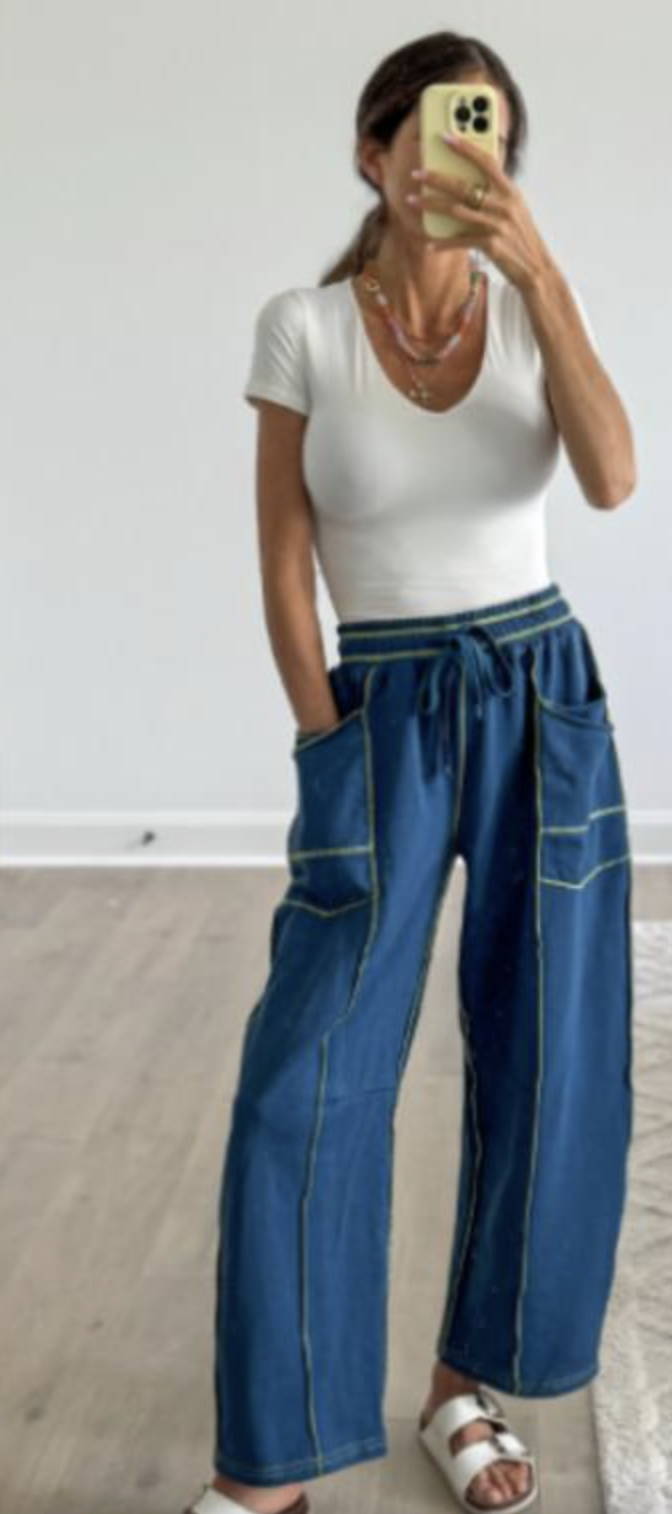 They feature a wide-leg, oversized barrel fit designed for a relaxed, roomy look.